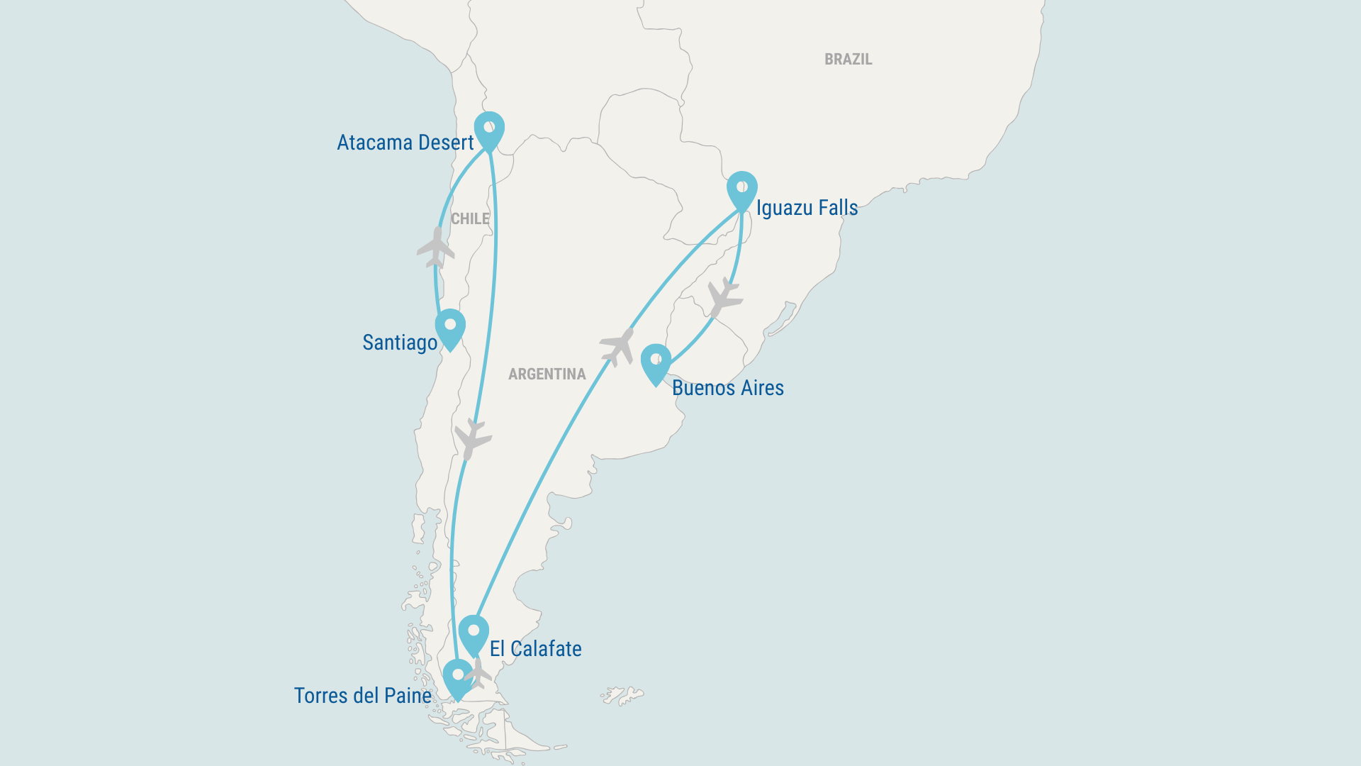 | TORRES DEL PAINE | EL CALAFATE | 30 mins | |